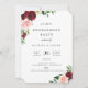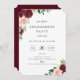 Elegante vermelho-burgundy e vermelho-claro, cor-de-água rosa, floral botânico, convite para janto de ensaio de casamento. A placa apresenta um modelo do estilo design de tipografia moderna e coordena o suporte a cores vermelho burgundy. Concebido para corresponder à nossa Coleção de Placas Botânicas Burgundy.