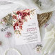 This design features lush watercolor burgundy and blush florals intertwined with earthy terracotta and rust tones, accented by delicate gold highlights. The result is a romantic yet modern invitation that perfectly suits fall, rustic, or destination weddings.