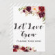Burgundy Boho Flower Sinal 5x7" Deixe o amor crescer