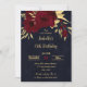 Convite de aniversário azul-marinho chic e elegante com lindas flores burgundy e algumas elegantes folhas de ouro. PARA MAIS PRODUTO CORRESPONDENTE, clique na coleção acima ou entre em contato comigo.