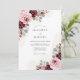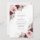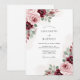 This design features a lush display of deep burgundy and blush pink roses paired with soft sage green eucalyptus leaves. The watercolor floral accents create a romantic and sophisticated mood, perfect for an elegant event. Tiny berry details add a touch of natural texture throughout the botanical arrangement. This palette is ideally suited for both autumnal and winter themes.