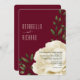 Romântica e ousada, este convite de casamento cheio de lama apresenta um grande rosa de creme com elegante verde e refinada tipografia de serifa. Perfeito para casamento outono, esse sofisticado design combina elegância floral de eterno com um fundo vermelho de vinho profundo. Ideal para celebrações clássicas, rústicas, ou de temas vinícolas. Personalize facilmente com seus detalhes de casamento para uma bela primeira impressão.