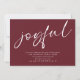 Burgundy da Festa de Natal do Script Joyful Contemporâneo. Disponível digitalmente e impresso. Personalize facilmente com os detalhes do seu partido. Joyful está em um grande conjunto lúdico moderno Caligrafia em branco que pode ser mudada para outra cor se você assim o desejar, a cor de fundo em cada lado, através da opção Editar mais.