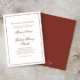 Faça uma declaração com este convite à ferrugem de burgundy do casamento, apresentando um roteiro elegante de caligrafia e uma tipografia tradicional clássica para um olhar de eterno. O texto formal é belamente enquadrado por uma fronteira mínima clássica, enquanto o monograma mínimo de volta mostra um design monograma e monograma inicial. Com seu estilo minimalista simples, este convite incorpora elegância simplista em tons ricos de burgundy e ferrugem, oferecendo uma sofisticação romântica suave perfeita para seu dia especial.