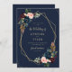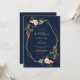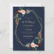 Um design Floral azul-Marinho e arrojado com um quadro geométrico dourado com texto no meio. Você pode alterar o texto, o tamanho do texto, a cor e a fonte neste modelo.
