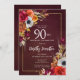 Convites Burgundy Fall Flowers Elegante Script 90 Birthday