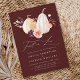 Este convite para o casamento mostra abóboras brancas e amarelas adornadas com burgundy, maroon e flores cor-de-rosa pinceladas sobre as folhas do outono. Para personalização mais avançada deste design, clique no link "Personalizar mais". Itens correspondentes também estão disponíveis.