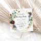 Este convite de casamento floral e verde espanhol é perfeito para um casamento no inverno. O elegante design apresenta marinho de aquarela, cor-de-rosa-pincelada e flores de sombra de vinho com detalhes artísticos lápis.