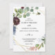 Este convite para casamento floral e verde é perfeito para um casamento no inverno. O elegante design apresenta marinho de aquarela, cor-de-rosa-pincelada e flores de sombra de vinho com detalhes artísticos lápis.