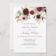 Convite de Casamento Elegante Floral da Borgonha desenhado em tons de burgundy e taupe, acentuado com ramos florais verdes. O texto inclui: Nomes de noiva e noiva, data de casamento, hora, local, endereço e recepção a seguir, em um fundo branco. O reverso desta carta é uma profunda sombra de burgundy para elogiar a frente. Para personalizar este convite, basta inserir seu texto em nosso modelo fácil, substituindo a amostra. Certifique-se de ver a papelaria e os acessórios correspondentes para esta Coleção de Casamentos Florais da Borgonha.