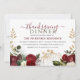 Um elegante convite para jantas de Ação de Graças no outono, com roteiro de caligrafia, burgundy rústica e flores brancas com verde-escuro e outras folhagem botânica, abóboras de água douradas brancas e falsas, branco e brilhante e um modelo de festa jante que é fácil de personalizar.