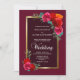 Convite para o casamento floral vermelho e rosa elegante com uma masala e uma borda dourada e um painel de interiores burgundy para destacar os detalhes do convite.