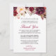 Crie o perfeito Cartões de agradecimentos de Configuração do Local de Casamento com esta modelo Floral Elegante Burgundy para expressar sua apreciação aos seus convidados. (1) Para mais personalização, clique no link "personalizar mais" e use nossa ferramenta design para modificar esse modelo. (2) Se você prefere papéis mais espessos / Término da matéria, talvez considere escolher o Tipo de papel correspondente. (3) Se precisar de ajuda ou itens correspondentes, entre em contato comigo.