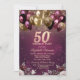 Convites Burgundy Glitter Balões Flores 50º Aniversário