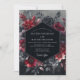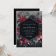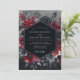 Experience a dramatic and romantic atmosphere with this stunning floral design. Lush, deep red roses and dahlias stand out against a dark, moody background of charcoal grey botanicals and shadowy leaves. This gothic-inspired arrangement creates a sense of elegant mystery for a sophisticated affair.