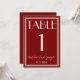 Classy and elegant whimsical ivory and deep red wedding table numbers. As you see it features a burgundy background with cream beige script that match the whole suite.