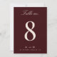 Add a polished finishing touch to your reception with this burgundy and ivory wedding table number featuring elegant typography and a rich, classic color palette. The deep burgundy background paired with soft ivory lettering creates a look that feels timeless, refined, and sophisticated, perfect for formal weddings, black tie celebrations, and fall or winter events. Designed to complement classic and elegant wedding styles, this table number brings understated luxury and visual cohesion to your reception tables.