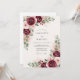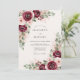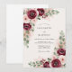 Deep burgundy roses pair with soft blush blooms for a moody and romantic aesthetic. Sprigs of silver dollar eucalyptus and small red berries add a natural, botanical touch to the watercolor arrangement. Subtle pink washes create a soft, artistic atmosphere across the design. This artwork is ideal for a sophisticated winter or autumnal event.