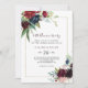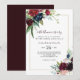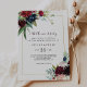 Este convite de bodas de ouro de casamento em burgundy marinho moderno é perfeito para uma celebração elegante de aniversário de casamento. O design apresenta flores vermelhas, burgundy, marinho, roxo, azul e blush lindamente pintadas à mão e folhas verdes.