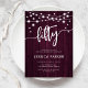 50º Convite de aniversário. Design russo com padrão de madeira de marrom burgundy. Cartão de convite clássico com luzes de fada e fonte branca de script. Perfeito para uma comemoração de na moda 50 dias. Personalize com seus próprios detalhes. Pode ser personalizado para qualquer idade! Impressos convites Zazzle ou modelo de impressão digital instantânea para download.