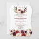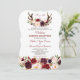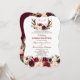 Rústico Burgundy Red Blush Floral Antlers monograma design com buquês florais de cor d'água, setas com corações e buquê floral como divisor; no verso um fundo real de burlôncio com buquês elegantes de canto floral de cor d'água. Use a ferramenta Personalizar para adicionar suas informações. Você pode mudar fontes, cores. Por favor, visite a minha Coleção de Antigos Florais Burgundy Blush Marsala.