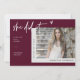Desde que se formou na escola — seja no segundo grau, na faculdade, na universidade ou no formando — agora é hora de festejar! Comemore esse marco incrível com um convite de formatura moderno e chic, apresentando um roteiro manuscrito de pincel na moda com coração sobre fundo burgundy e a foto do formando enquadrada em um retângulo. Personalize facilmente o texto e a foto na seção de personalização. Por favor, note: as belas frases escritas à mão com o texto "ela fez" com coração, "formando" e "festa de formatura" juntamente com as linhas e outros trabalhos de arte gráficos e elementos não podem ser editados, apagados ou movidos. Eles estão consertados. Você pode personalizar e personalizar o convite para ajustado do seu evento. Compartilhe-o digitalmente por email, texto ou mídia social, ou impressão e envie-o para seus convidados.