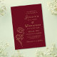 Elevem o vosso casamento com este minimalista, moderno, elogioso, vermelho de burgundy e um convite de ouro, com sotaques florais elegantes de rosa. Com um pano de fundo arrojado e destaques de ouro elegantes, esta design exude o charme do eterno, perfeito para uma celebração chica e romântica. Personalize por um toque único no seu dia especial.