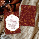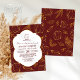 Convide seus convidados para seu janto de feriado de Ação de Graças com esta elegante e rústica burgundy e tons de ouro cor de laranja quente contornos de folhas de outono e padrão de abóboras.
