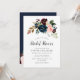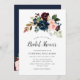 Celebrar a noiva-a-ser com belas flores de burgundy, blush e marinho azul. Os detalhes das cores são exclusivos do tema do casamento. O texto e o texto, juntamente com outros recursos deste design, podem ser personalizados clicando no link personalizar.