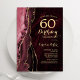 Borgonha e ouro agata 60º convite de aniversário. Elegante design moderno, com a cor da água do vinho tinto-escuro de marsala, com o fundo geode do mármore, o dourado falso brilho e o guião tipográfico. Trendy convida o cartão perfeito para uma comemoração de dia das mulheres na moda. Impressos convites Zazzle ou modelo de impressão digital instantânea para download.