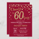 Convites Burgundy Red Dourado Surpresa 60º aniversário Diam