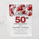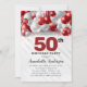 Convites Burgundy Red Silver Balloon Glitter 50º Aniversári