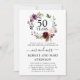 Uma grinalda bonita e elegante de flores vermelhas burgundy, rosa e roxas envolve 50 anos para coroar este convite de festa de aniversário de 50 anos de casamento. O texto é uma combinação de caligrafia moderna e texto reto clássico para dar um toque contemporâneo.