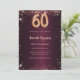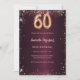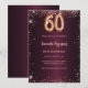Para um elegante aniversário de 60 anos. Uma cor de fundo de gradiente burguês. Decorado com faíscas rosa douradas. Personalize e adicione um nome e detalhes da parte. O nome é escrito com um script de estilo manuscrito