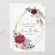 Convites Burgundy Rose Floral Geométrico Salvar a Data