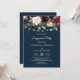 Convites Burgundy Rústico Azul Marinho & Flores Vermelhas &