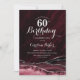 Borgonha e prata agatam 60º convite de aniversário. Elegante design moderno, com vinho de marsala, cor vermelha escura, fundo geode de mármore agate, prata brilhante falso e letra tipografia. Trendy convida o cartão perfeito para uma comemoração de dia das mulheres na moda. Impressos convites Zazzle ou modelo de impressão digital instantânea para download.