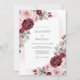 This design features a lush arrangement of deep burgundy and soft blush pink roses nestled among delicate greenery. Subtle eucalyptus leaves and watercolor accents create a romantic and sophisticated mood. The rich, moody color palette is ideal for an elegant autumn or winter seasonal event.