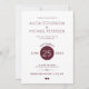 A tipografia moderna minimalista simples convite de casamento branco e vermelho escuro com dois pequenos corações e um círculo com a data dentro. +++++++++++++++ Fácil de personalizar com o seu texto! +++++++ O convite é adequado para todas as estações modernas de tendências a casamentos interiores, chás de casais ou festas de noivado - recomendado especialmente para recepções modernas de classe.