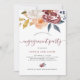 Este convite à festa de noivado apresenta uma adorável buquê floral de aquarela, com flores e folhas em tons de burgundy, pêssego, cinza azul, branco e ouro amarelo. A tipografia de script moderno adiciona um toque de na moda. Este convite para a festa de noivado de casamento é especialmente perfeito para casamentos de burgundy, rustic e outono.