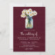 Convites Burgundy Wood Daisies Mason Jar QR Code Wedding