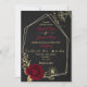 burgundy de luxo elegante e flores douradas com algumas folhas de ouro em quadro geométrico convite ao casamento negro Os detalhes da brilha são simulados