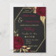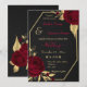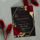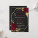 belas flores burgundy de luxo com algumas folhas de ouro convite para casamento geométrico preto Os detalhes da brilha são simulados