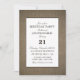 Estes convites são perfeitos para qualquer um que planeje uma comemoração de aniversário rústica. O design apresenta um efeito de burlap frente com um efeito de madeira escura no dorso e é concluído com uma redação editável correspondente. O design de na moda pode ser personalizado para se adequar ao seu evento especial e será o anúncio perfeito para qualquer festa temática rústica, incluindo chás de panela, noivados, chás de casamento, festas de aniversário e muito mais.