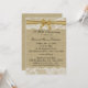 Convite de aniversário de 50 anos com renda country romântica e burlap com desenho impresso de arco dourado. Personalize o texto como preferir.