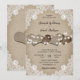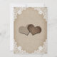 This elegant and romantic rustic country wedding invitation featuring burlap hearts against a beige burlap background adorned with delicate floral lace and string lights is perfect for inviting your guests to your rustic country or barn wedding party.