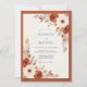 This design showcases a rich palette of burnt orange and cream with earthy botanical accents. Lush roses and delicate ranunculus are paired with autumn-inspired foliage and dried leaves for a warm harvest feel. The artistic floral arrangements are positioned in a balanced layout against a soft off-white backdrop. It evokes a sophisticated and cozy atmosphere ideal for a late-season event.