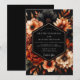Embrace a dramatic and romantic atmosphere with this elegant floral design. A stunning composition of burnt orange, terracotta, and deep charcoal blossoms creates a striking, moody contrast. Lush anemones and rich, painterly flowers are artfully arranged against a dark backdrop for a sophisticated autumn affair.