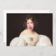 Remix de uma pintura de pop de uma mulher com uma pastilha elástica rosa.