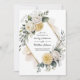 Embrace the romance of a blooming secret garden with this Butter Yellow And Gold Wedding Invitation. This design is a masterpiece of soft colors, featuring an abundant arrangement of creamy white roses, delicate butter yellow dahlias, and soft sage foliage.
